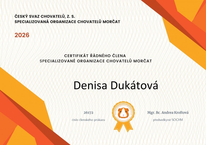 Jsme malá chs a morčíky chováme hlavně pro potěšení. Zabýváme se chovem ušlechtilých morčat s PP. V trikolorních barvách jako je např. černá-červená-bílá, černá-buff-bílá, čokoládová-oranžová-bílá a to i v solid a aguti barvách. Jedná se o krátkosrstá plemena. Klademe důraz na zdravá morčata bez genetických vad a naším cílem je odchovávat zdravá a spokojená morčata. Morčíky chováme doma v rodinném prostředí, kde jsou zvyklá na děti a běžný ruch domácnosti. Jsou denně mazlena dětmi a samozřejmě i námi dospělými. V roce 2014 jsme se stali oficiální registrovanou chovatelskou stanicí a jsme řádným členem specializované organizace chovatelů morčat (SOCHM).
